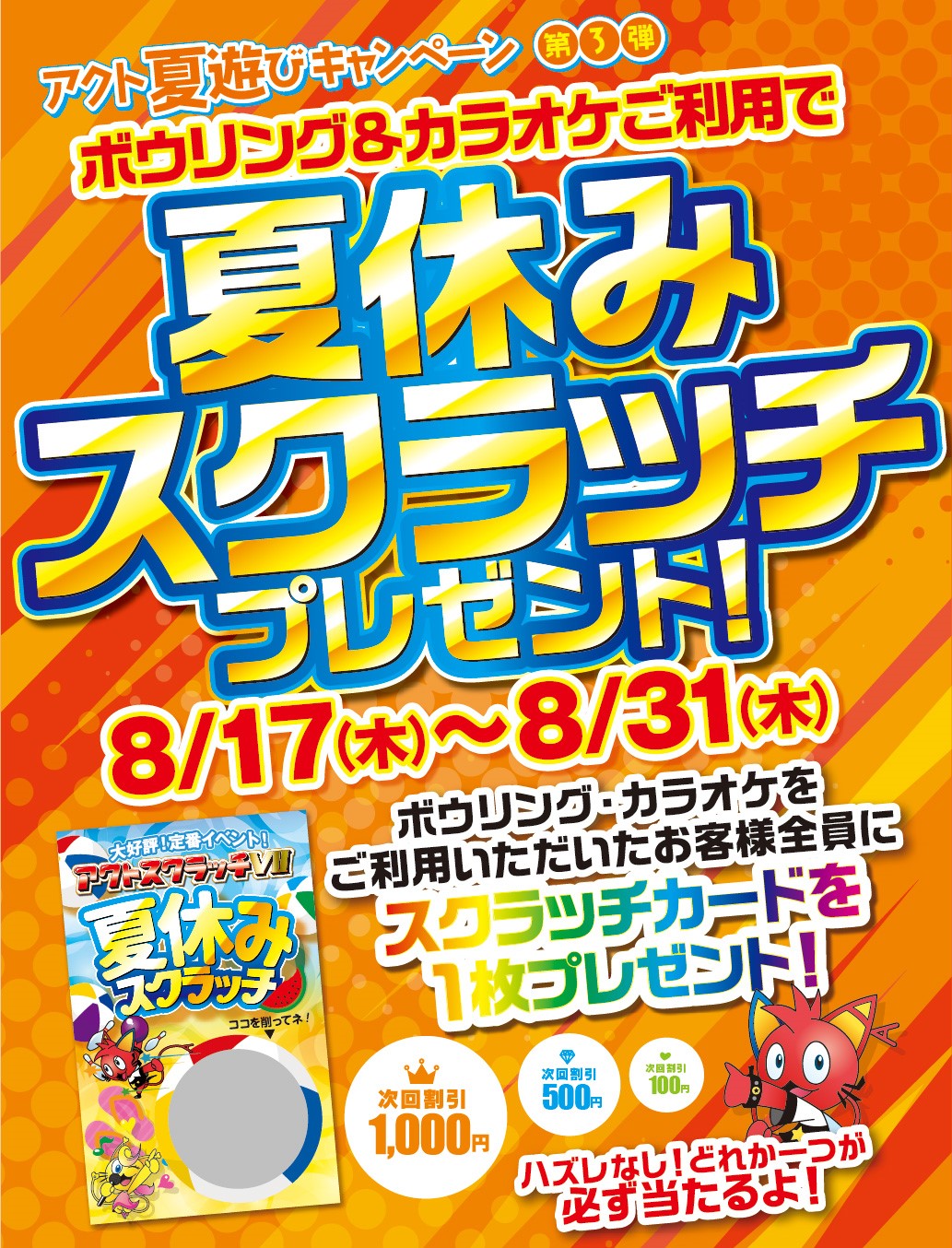 第3弾 『大人気企画が帰ってきた!ハズレなし!夏休みアクトスクラッチ‼』