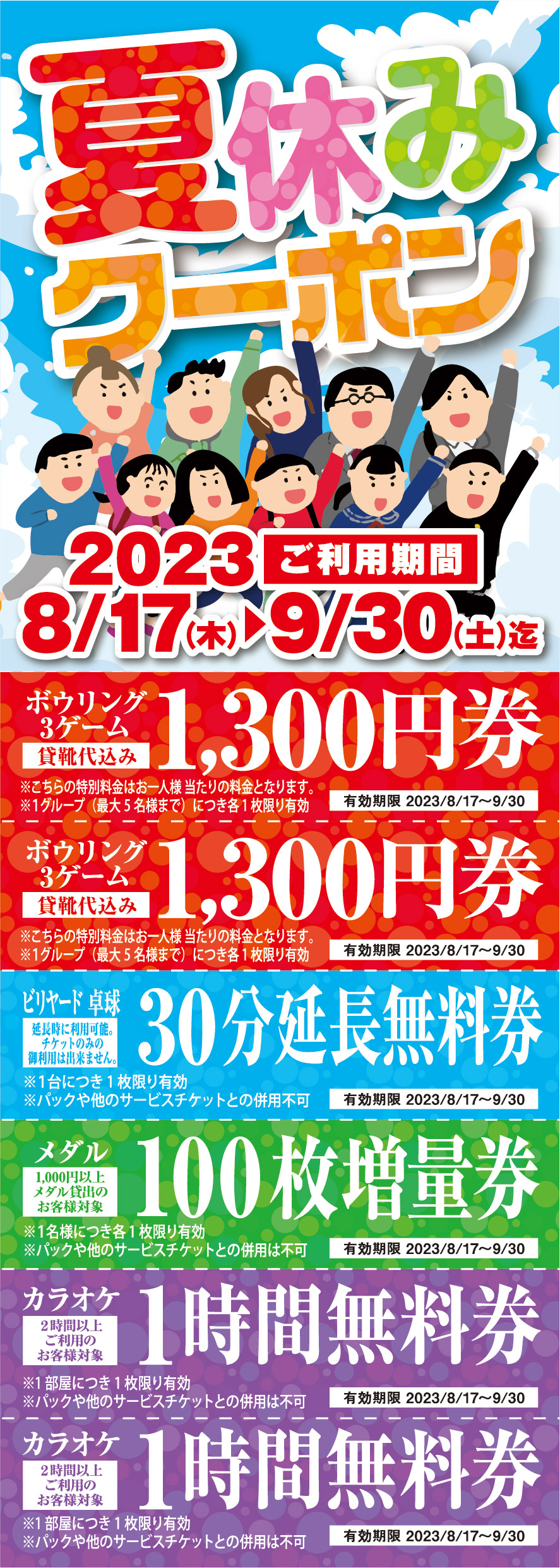 ボウリングかカラオケで遊んでいただいた高校生以下のみなさんに!
