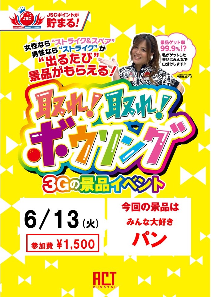 ★競技会★取れ取れボウリング! 大人気!3ゲームの景品イベント 取れ取れボウリング! 男性はストライク 女性はスペア以上 出るたび景品をプレゼント ♥岸田プロの獲得景品はみんなで山分け!