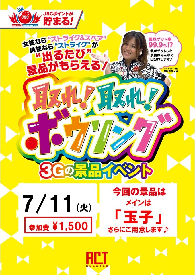 ★競技会★取れ取れボウリング! 大人気!3ゲームの景品イベント 取れ取れボウリング! 男性はストライク 女性はスペア以上 出るたび景品をプレゼント ♥岸田プロの獲得景品はみんなで山分け!
