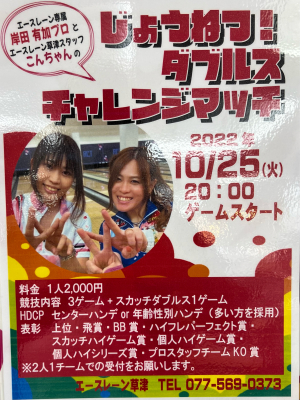 25日(火) アクト草津 ★競技会【ダブルスチャレンジ🔥(さや&きしゆか)】 シングルス3G+スカッチ方式1G (2人1組でエントリーお願い致します)