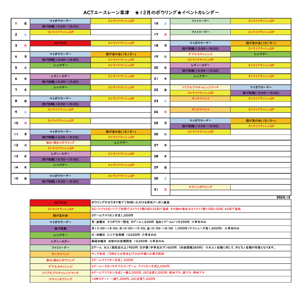 要チェック!12月のボウリングカレンダー