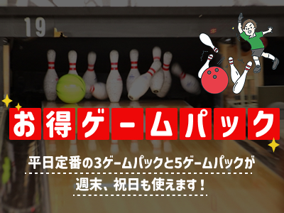 平日定番の3ゲームパックと5ゲームパックが週末、祝日も使えます!