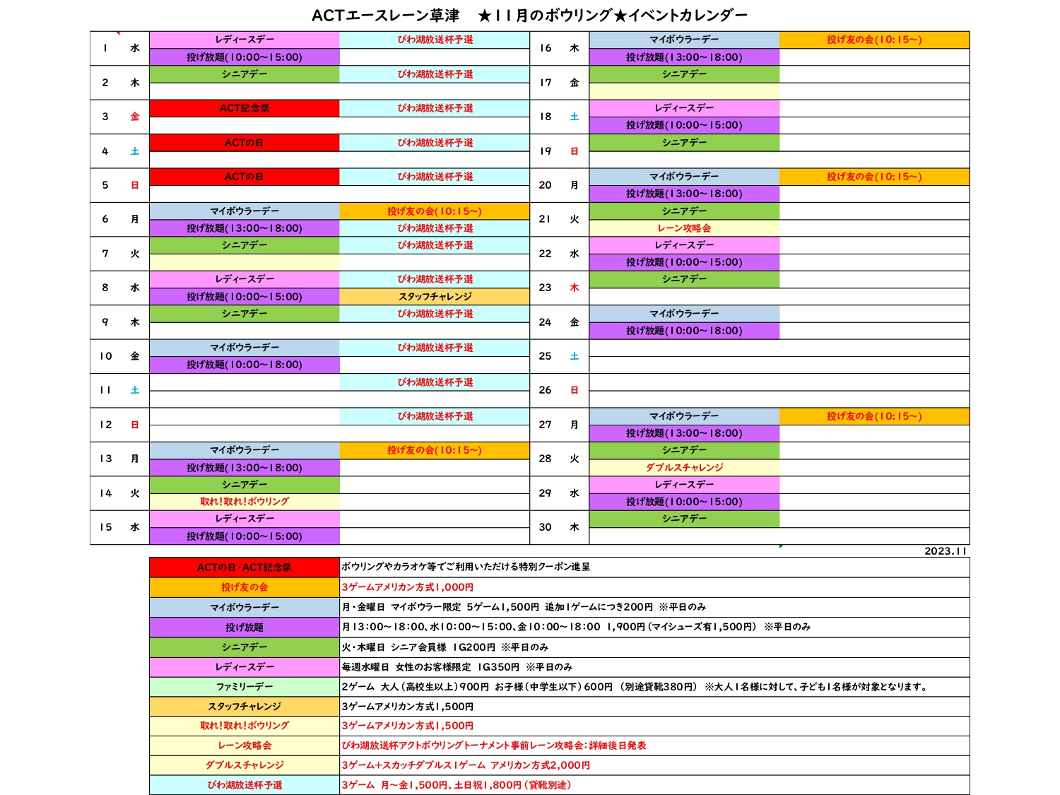 要チェック!11月のボウリングカレンダー