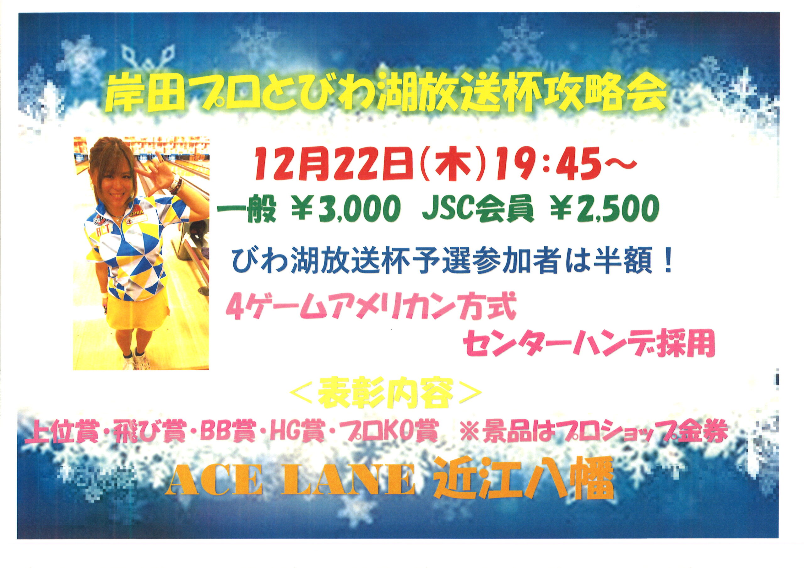 JSC会員様2,500円 一般料金3,000円 ※びわ湖放送杯に参加された方(予選含む)は各料金の半額