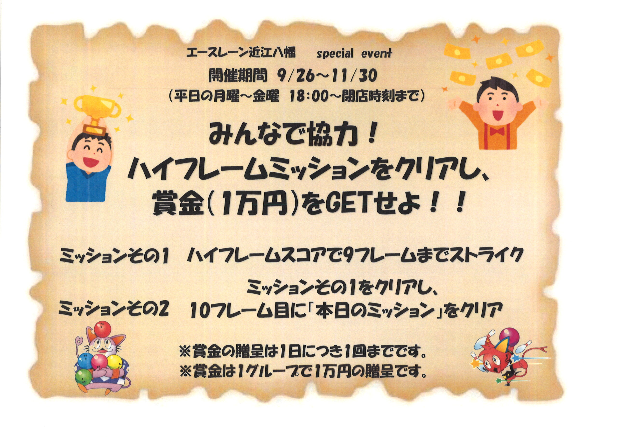 ミッション達成すると賞金1万円!!