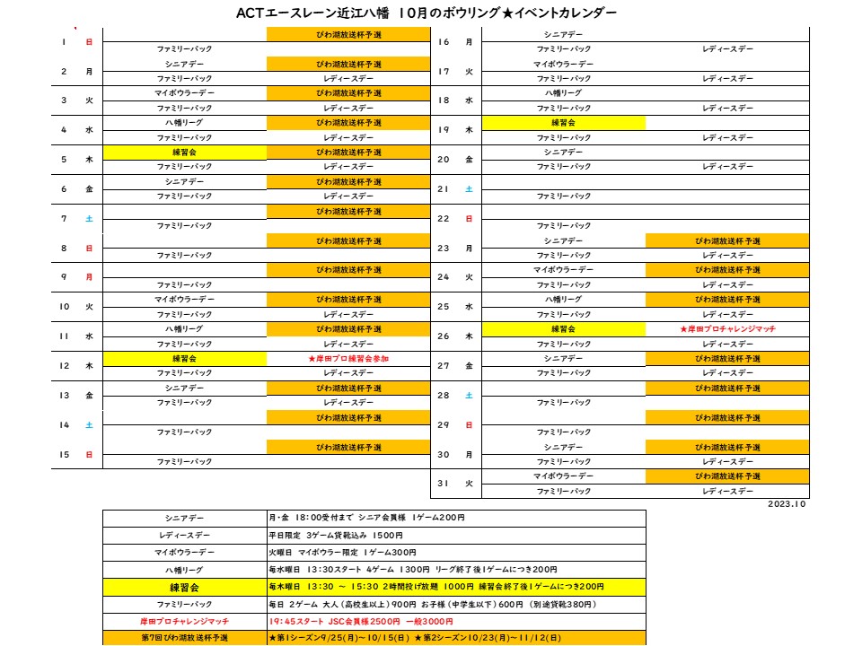 要チェック!10月のボウリングカレンダー