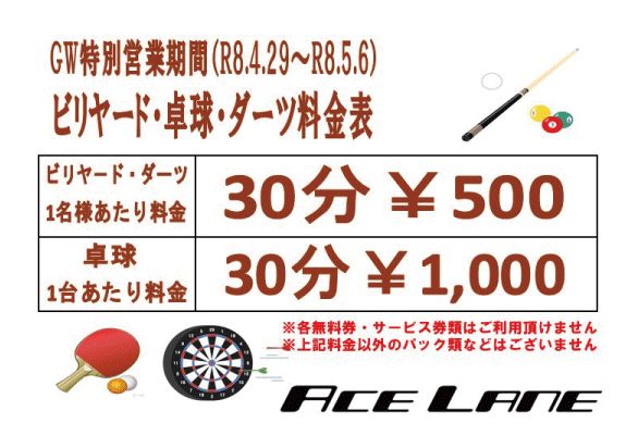 ビリヤード 3台・卓球 2台